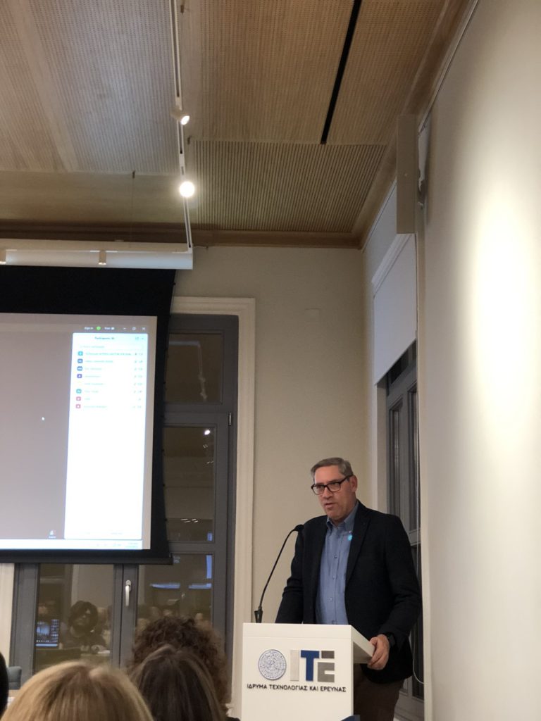 Την εκδήλωση χαιρέτησαν ο Πρόεδρος του ΙΤΕ, καθηγητής κύριος Βασίλειος Χαρμανδάρης, η Προϊσταμένη Γενικής Διεύθυνσης Αναπτυξιακού Προγραμματισμού -Παρατηρητήριο Καινοτόμου Επιχειρηματικότητας Περιφέρειας Κρήτης κυρία Χρυσούλα Δασκαλάκη ως εκπρόσωπος της Περιφέρειας Κρήτης, ο Υποδιοικητής της 7ης Υγειονομικής Περιφέρειας ΥΠΕ, κύριος Χρήστος Κλεοβούλου, ο Διευθυντής Πληροφοριακών Συστημάτων-ΙΠ ΙΤΕ και Επιστημονικός Συντονιστής του Ευρωπαϊκού Ψηφιακού Κόμβου Καινοτομίας για Ευφυή υγεία –Smart Health, καθηγητής κος Δημήτριος Πλεξουσάκης και ο πρόεδρος του Ιατρικού Συλλόγου Ν.Ηρακλείου κύριος Αλέξανδρος Πατριανάκος.