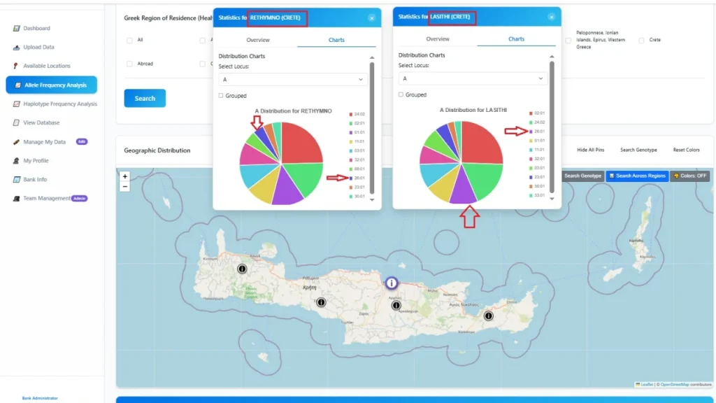 Το εργαλείο αυτό χαρτογραφεί την Κρήτη και εντοπίζει περιοχές με σπάνιους τύπους ιστοσυμβατότητας, είτε λόγω γεωγραφικής απομόνωσης -όπως το Λασίθι – είτε λόγω ιδιαίτερων γενετικών χαρακτηριστικών – όπως ο Μυλοπόταμος. Με τον τρόπο αυτό εντοπίζονται τα κενά στη δεξαμενή διαθέσιμων μοσχευμάτων, ώστε η προσπάθεια να επικεντρώνεται όχι απλώς στην αύξηση των δοτών, αλλά στην προσέλκυση δοτών από συγκεκριμένες περιοχές που μπορούν να καλύψουν αυτούς τους σπάνιους τύπους.